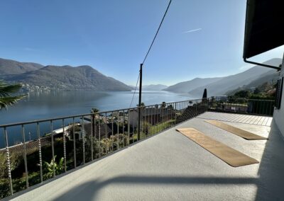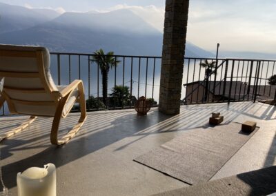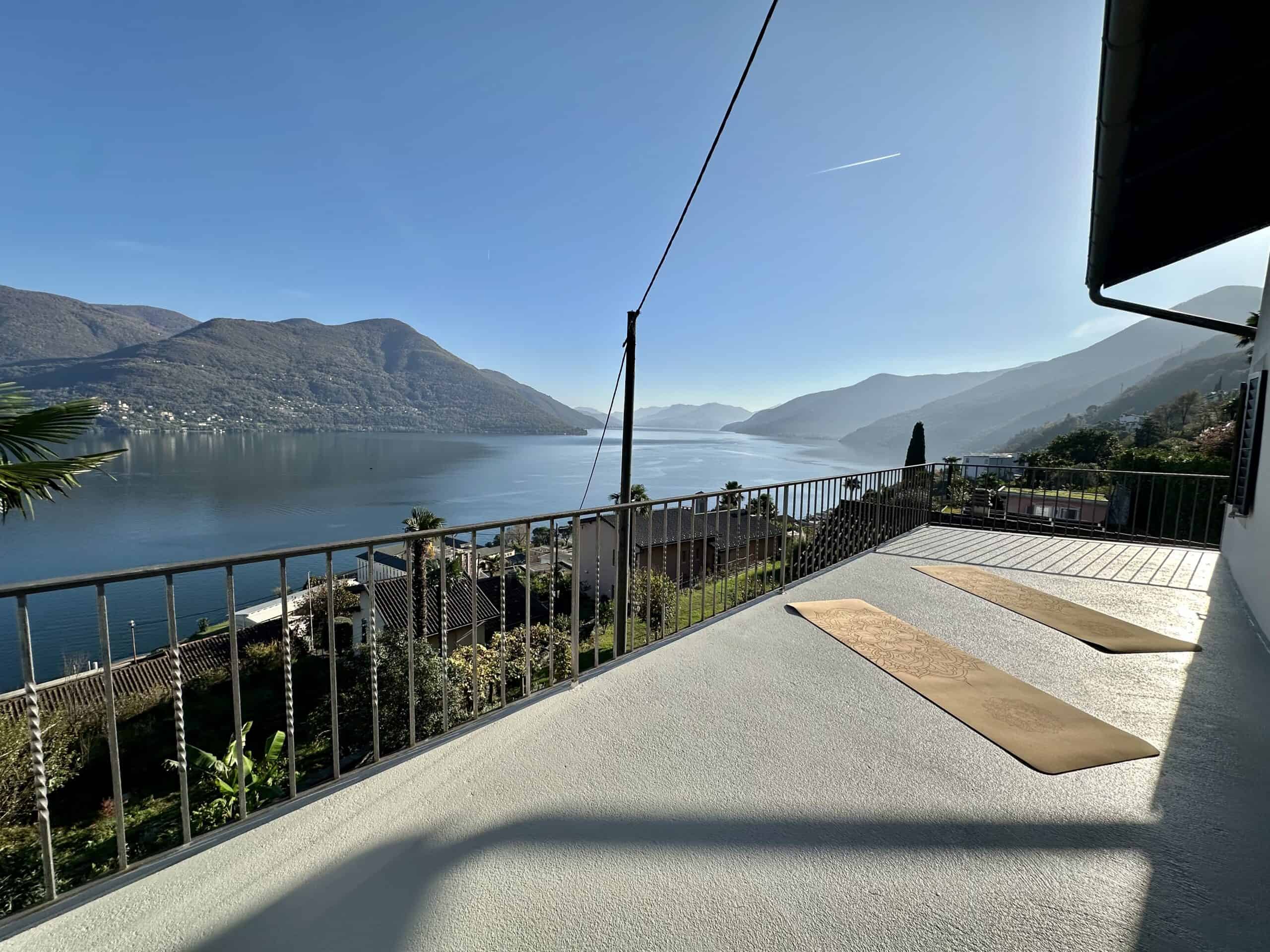 Ich lade dich herzlich zu einem unvergesslichen Yoga-Wochenende in Brissago ein. Unser liebevoll gestaltetes Haus, das einst meinem Nonno gehörte, bietet einen traumhaften Blick auf den glitzernden Lago Maggiore. Für die Yogaeinheiten nutzen wir Terrassen und Garten, bei schlechtem Wetter die gedeckte Terrasse.